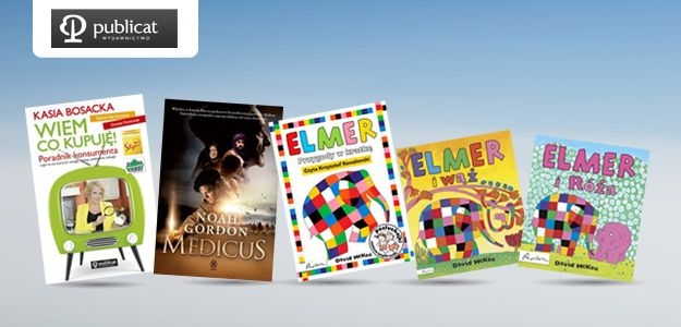Mamy dla was dziesięć nagród! Są to zestawy przygotowane przez Wydawnictwo Publicat – a w nich książki dla dorosłych oraz książki i audiobook dla dzieci z ulubieńcem kilkulatków, słoniem Elmerem.