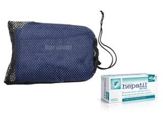3 wakacyjne zestawy składające się z Hepatil Detox i super cienkiego ręczniczka wakacyjnego z mikrofibry