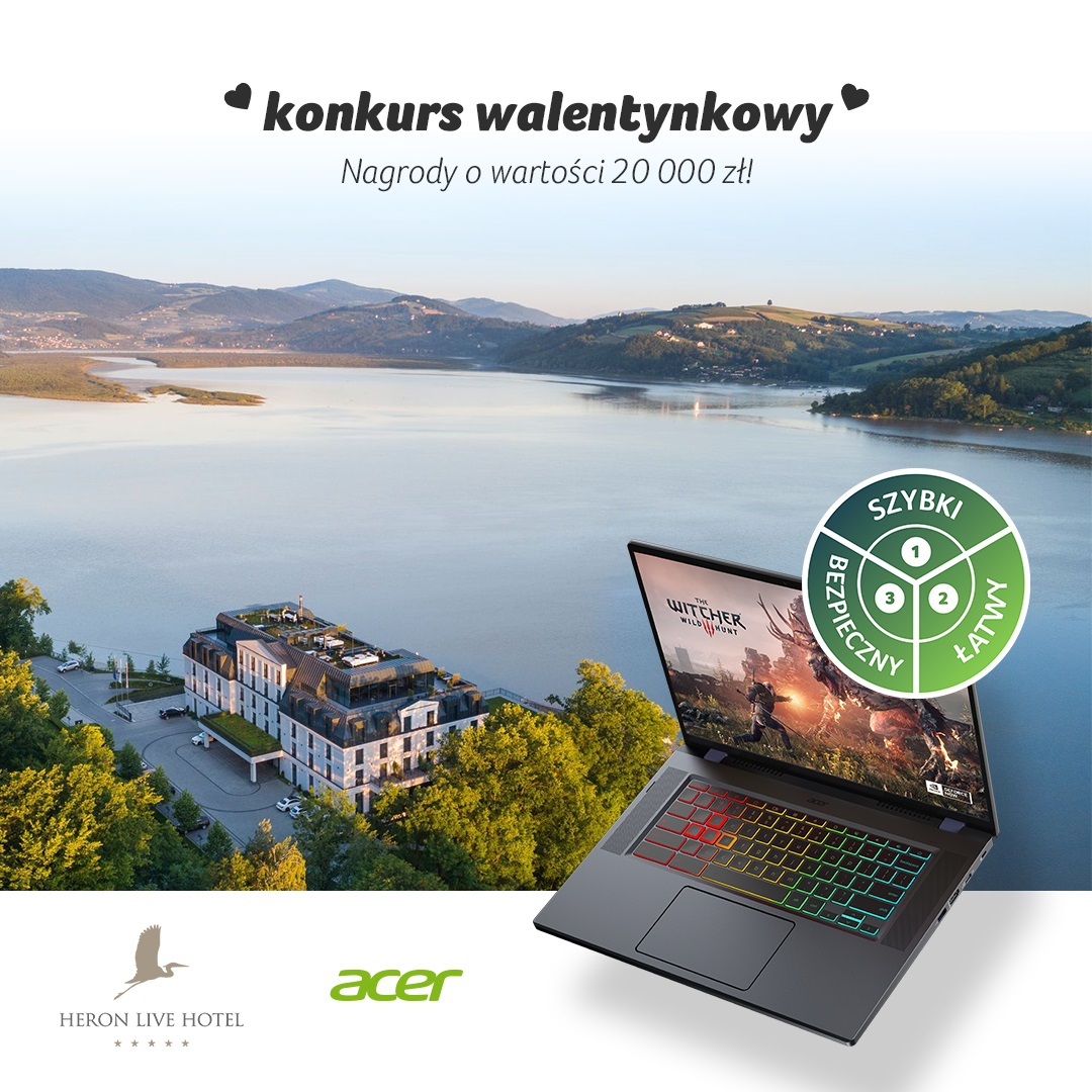 - 1 miejsce wygrywa trzydniowy wyjazd dla dwóch osób do Heron Live Hotel i laptop Acer Chromebook 516 GE