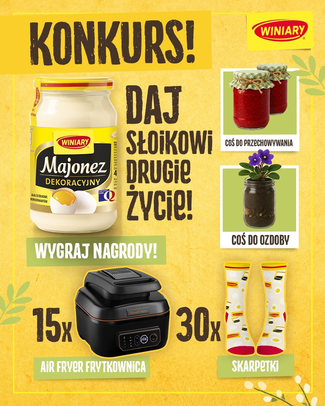 Podziel się swoim dziełem:Na Instagramie – oznacz @winiary i dodaj #drugieżyciesłoika lub na Facebooku – dodaj komentarz pod postem konkursowym na profilu WINIARY