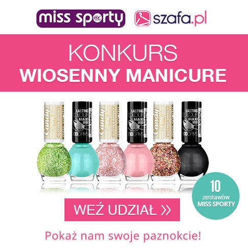 Pokaż swój wiosenny manicure, dołącz link do oferty z szafa.pl z ubraniem pasującym do twojej paznokciowej stylizacji i wygraj zestaw lakierów marki Miss Sporty!