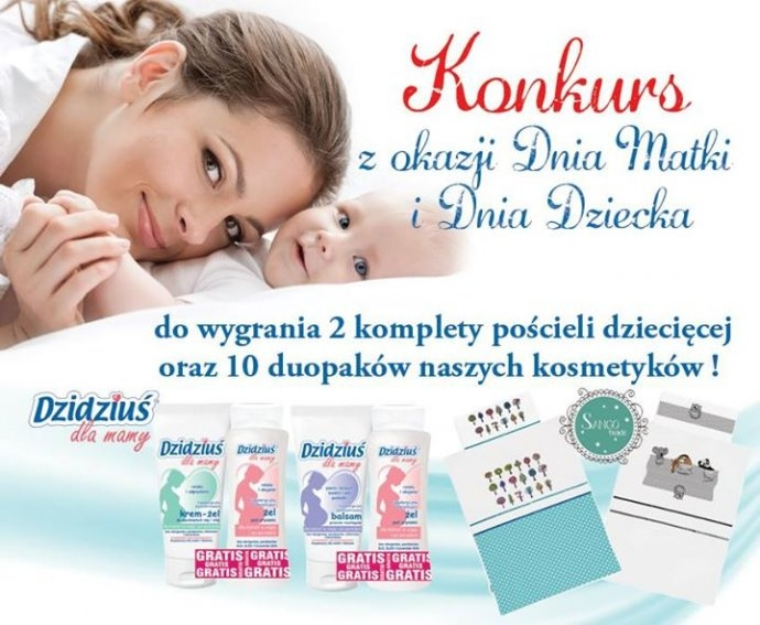 2 komplety pościeli dziecięcej ufundowane przez firmę Sango Trade - www.sangotrade.pl oraz 10 zestawów kosmetyków z serii Dzidziuś dla mamy