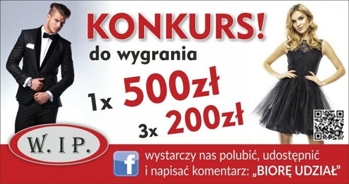 bony zakupowe o wartościach: 1×500 złotych i 3×200 złotych do realizacji w naszych sklepach W.IP.