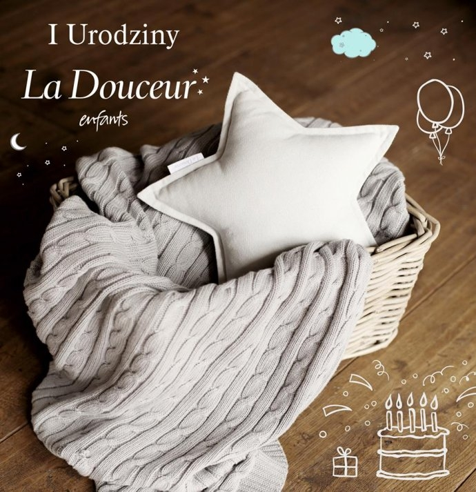 szary kocyk z linii Provence oraz poduszeczka gwiazdka