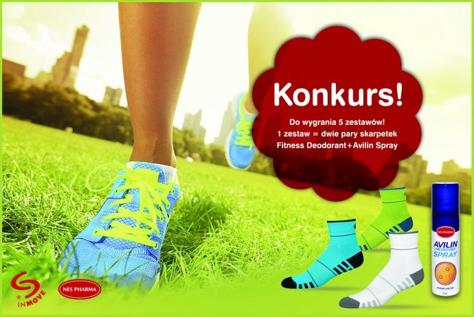 5 zestawów pod dwie pary takich skarpetek. Do kompletu − nie żebyśmy kusili los, ale zawsze może się przydać − Avilin Spray, czyli opatrunek w sprayu, który przylega do zranienia lepiej niż plaster.