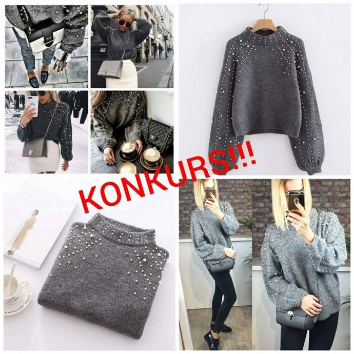 sweterek w perełki, kolor jasnoszary, rozmiar uniwersalny