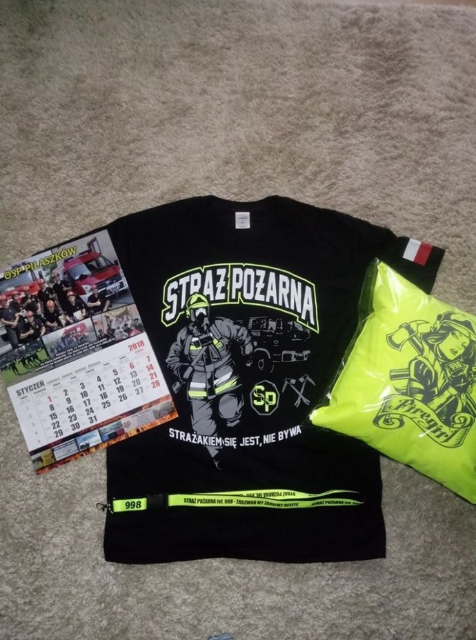 wspaniała koszulka z motywem strażackim, poduszkę firegirl oraz super smycz, mało tego do każdej z tych nagród dołączamy nasz kalendarz!