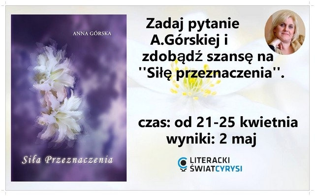 Warunkiem uczestnictwa w konkursie jest zadanie w komentarzu pytań (1-maks. 3) do Anny Górskiej na temat jej twórczości, zainteresowań itp.