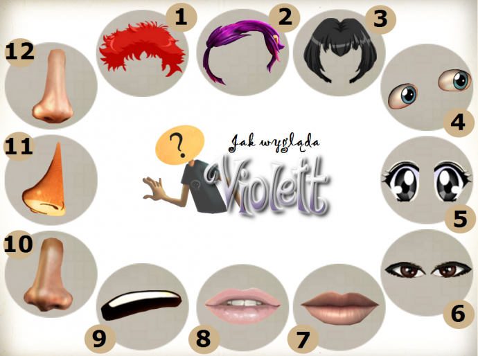 Ustal, jak wygląda Violett. W każdej kategorii wybierz jedną z możliwości.