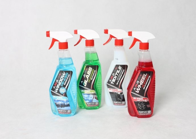 Cleaner do felg, odmrażacz do szyb, a także płyn do czyszczenia szyb i tapicerek firmy A.M.G Venol
