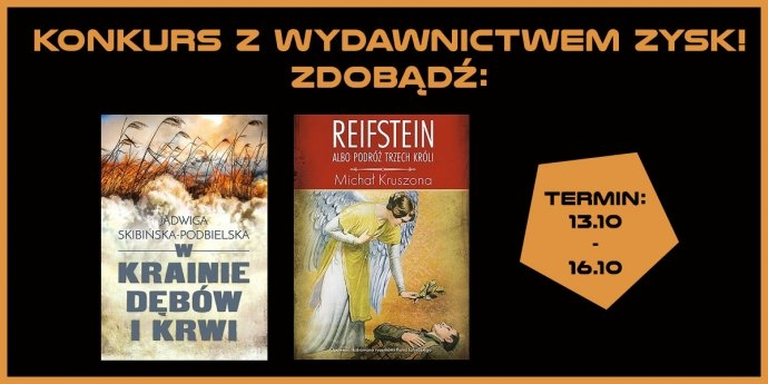 Dzięki uprzejmości Zysk i S-ka Wydawnictwo mamy dla Was konkurs, w którym do zdobycia będą 2 egzemplarze powieści "W krainie dębów i krwi" Jadwigi Skibińskiej-Podbielskiej oraz 2 egzemplarze książki "Reifstein albo Podróż Trzech Króli" Michał Kruszona.