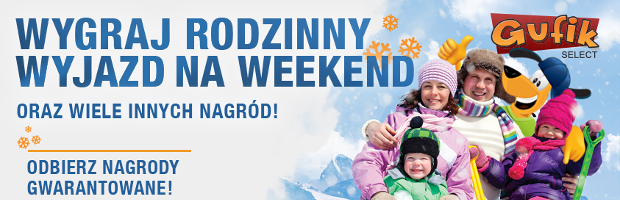 W sklepie firmowym Bartek pobierz kupon konkursowy (warunek - przymierzenie obuwia). Zarejestruj się na gufik.pl i dokończ zdanie: "Chciałbym pojechać z rodziną do Zamku Ryn, bo..." (do 250 znaków).