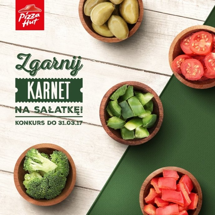 5x karnet na trzykrotne zaproszenie na skorzystanie z baru sałatkowego w restauracjach Pizza Hut z obsługą kelnerską.