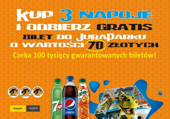 Wystarczy kupić w kolporterze 3 napoje pepsi, mirinda lub 7up i odebrać bilet do parku rozrywki w Bałtowie