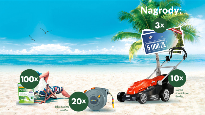 Kup opakowanie promocyjne nawozu ogrodowego marki POKON, na którym znajduje się jeden Kupon Loterii i zarejestruj swój udział.