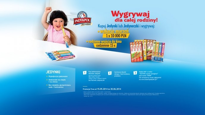 Każdy, kto między 15 maja a 30 czerwca 2014 r. kupi parówki Jedynki lub Jedyneczki, ma szansę wygrać 10 000 zł na wakacje marzeń. Dodatkowo codziennie do wygrania 15 rodzinnych wyjść do kina (bilety dla 4 osób). Aby wziąć udział w loterii wystarczy zachować dowód zakupu oraz kod kreskowy produktu i wysłać SMS zgłoszeniowy pod numer 70908 o treści według wzoru: JEDYNKI.numer_paragonu.