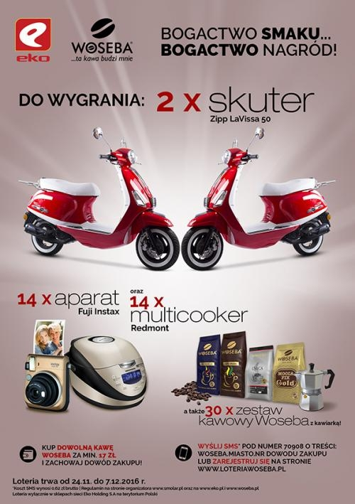 Na zwycięzców czekają atrakcyjne nagrody w postaci dwóch skuterów Zipp LaVissa 50, 14 aparatów fotograficznych Fuji Instax i 14 multicookerów Redmont. Każdy laureat otrzyma również zestaw kawowy Woseba z kawiarką.