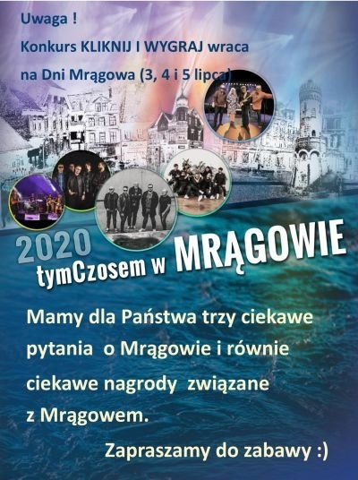W weekend 3-5 lipca /piątek, sobota, niedziela/ podczas Dni Mrągowa 2020 wracamy z konkursem KLIKNIJ I WYGRAJ.
