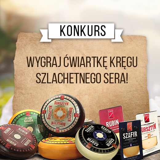 I miejsce – ćwiartka kręgu wybranego sera (do wyboru: Rubin, Szafir, Bursztyn z firmy OldPoland) + drobny upominek!