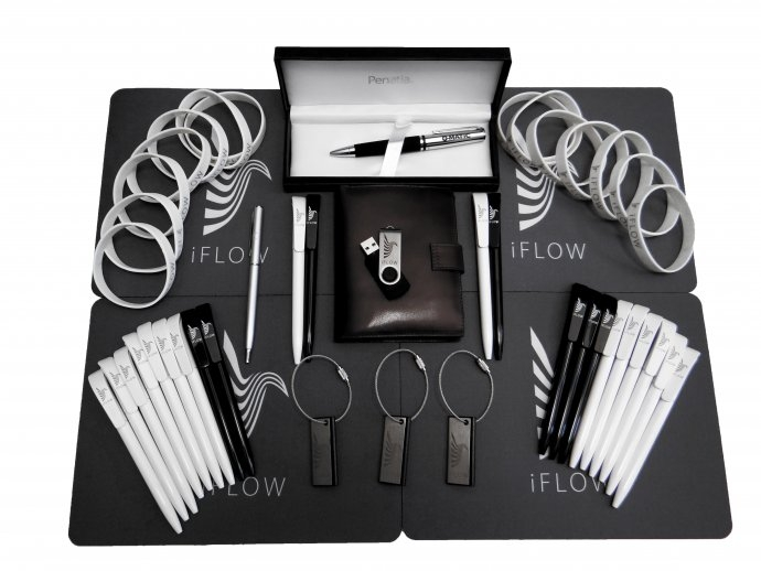 III miejsce: pendrive USB, breloczek iFLOW, zestaw dwóch długopisów iFLOW, podkładka pod mysz oraz opaska na nadgarstek.