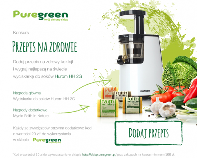 Jeśli dbasz o zdrowie swoje i swoich bliskich to z pewnością znasz przepisy na doskonałe soki domowej roboty. Podziel się nimi, a możesz wygrać najnowocześniejszą na rynku wyciskarkę HUROM HH 2G, dzięki której przygotujesz jeszcze pyszniejsze soki, jeszcze prościej.