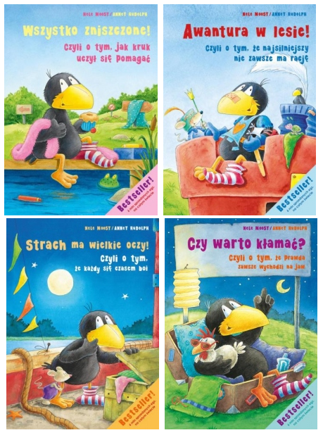 zestawy książek od wydawnictwa Skrzat: 2 książki z serii Mały Kruk + 2 książki z serii Listonosz Kot