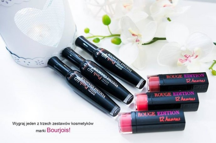 trzy zestawy kosmetyków Bourjois: mascara Volume Glamour Effet Push Up i Pomadka Rouge Edition 12 Hours!