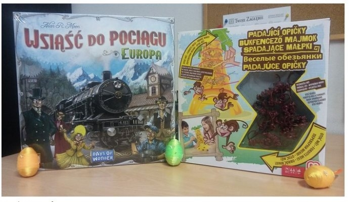 - gry planszowe: „Spadające małpki” oraz „Wsiąść do pociągu: Europa”