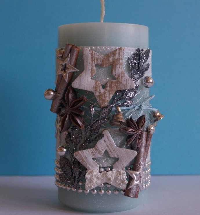 duża świąteczna świeca,ręcznie odlewana i udekorowana