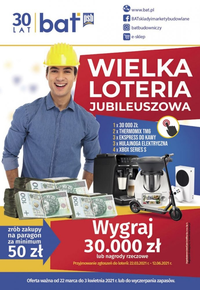 W sieci sklepów Bat zrób zakupy za mnin. 50zl, zachowaj paragon.Wypełnij kupon loteryjny i wrzuć do urny w sklepie