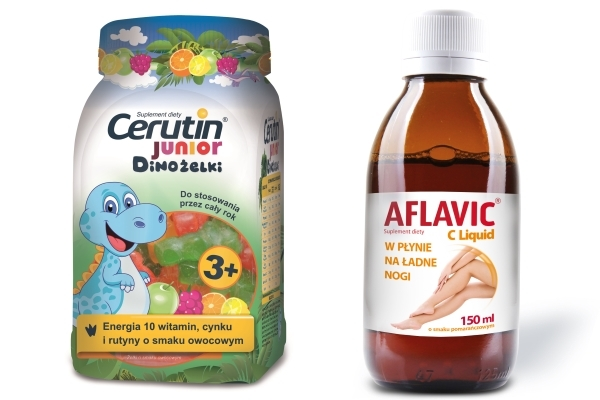 W skład każdego zestawu wchodzą: witaminowe dinożelki Cerutin Junior, Aflavic C Liquid na ładne nogi