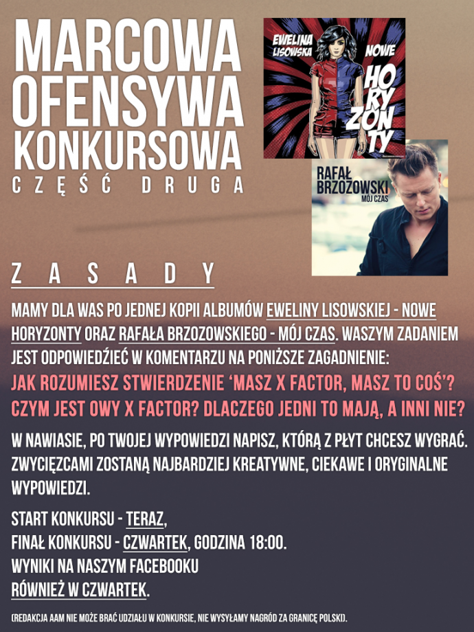 Wygraj album Eweliny Lisowskiej lub Rafała Brzozowskiego, do godz. 18:00