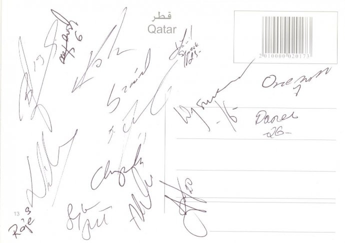 autografy polskich szczypiornistów na pocztówce z Kataru
