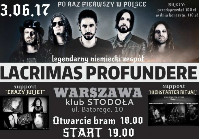 6 podwójnych zaproszeń na koncert Lacrimas Profundere, 3 czerwca 2017 w warszawskim klubie Stodoła.