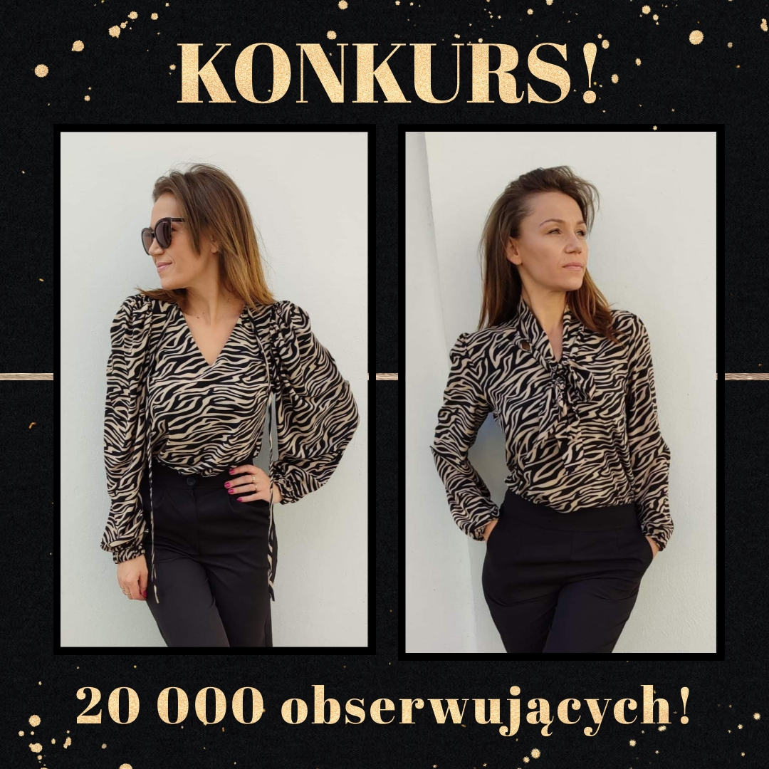 bluzka z wiązaniem w zwierzęcy print, bluzka boho z marszczonymi rękawami print zebra