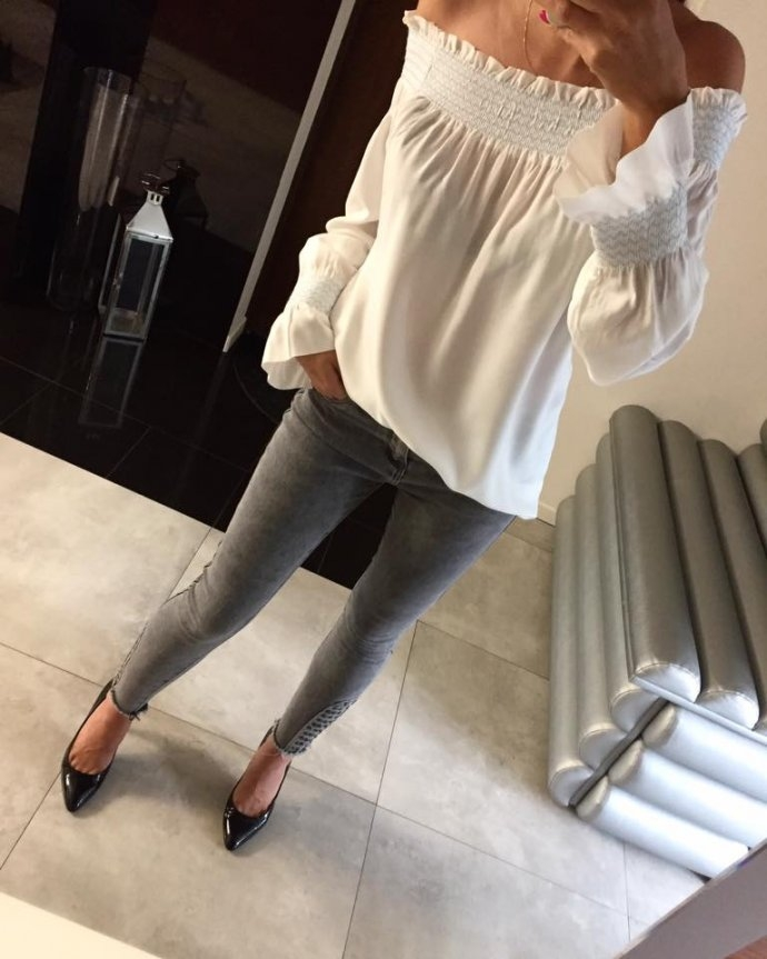 bluzka ze zdjęcia hiszpanka z rozszerzanymi rękawami w kolorze kremowym