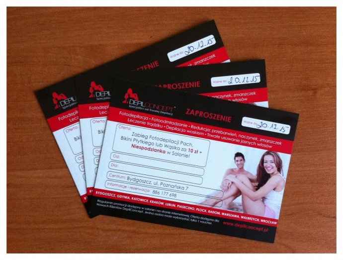 Aby otrzymać bon należy w komentarzu pod postem odpowiedzieć na pytanie: którą część ciała chciał/chciałabyś poddać fotodepilacji : wąsik, bikini, pachy i dlaczego? oraz podać adres e-mail do kontaktu. Najlepsze 3 odpowiedzi wygrają bon do zrealizowania do 20 grudnia w salonie DepilConcept. Rozdanie potrwa do 27 listopada. W niedzielę 29 listopada wybiorę 3 najlepsze odpowiedzi i ogłoszę zwycięzców pod nowym postem na blogu
