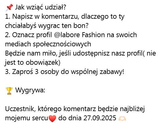 - Wstaw zdjęcie w komentarzu pod postem w stylizacji LABORE FASHION