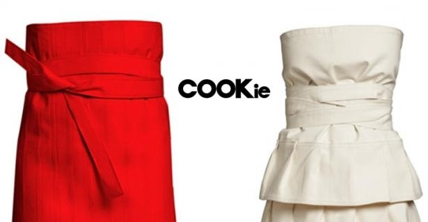 dwa fartuchy - czerwony męski Pedro oraz biały damski Carla.