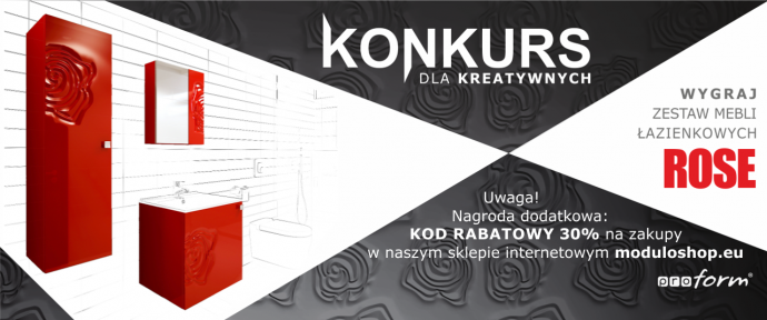 W każdy poniedziałek (11, 18 oraz 25.05.2015 r.), spośród wszystkich osób, które udostępnią na swoim profilu Facebookowym informację o naszym "Konkursie dla kreatywnych - Wygraj zestaw mebli łazienkowych Rose" wylosujemy zwycięzcę, który otrzyma jednorazowy kod rabatowy -30% do naszego sklepu moduloshop.eu!