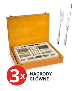 - Trzej Laureaci, którzy nadeślą do nas najciekawsze, w ocenie komisji konkursowej zdjęcie otrzymają nagrodę główną w postaci kompletu sztućców Muza 68 elementów w skrzyni drewnianej o wartości 1680 pln brutto.