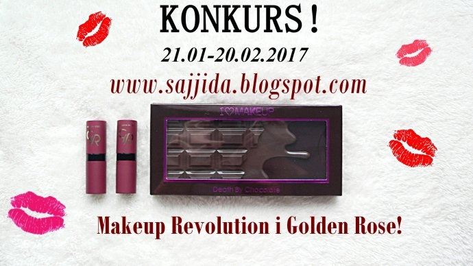 Pierwsze miejsce - paleta firmy Makeup Revolution- Death by Chocolate oraz pomadka Golden Rose Velvet Matte w kolorze 012
