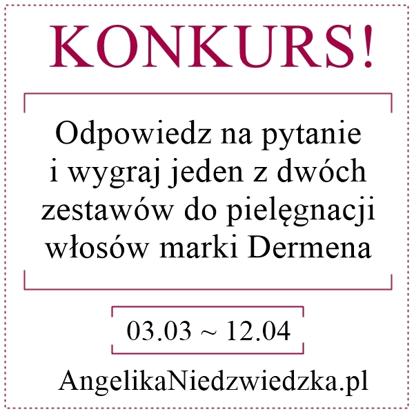 Nagrodami w konkursie są dwa zestawy kosmetyków do pielęgnacji włosów marki Dermena, w których skład wchodzi szampon, odżywka oraz żel wzmacniający włosy.