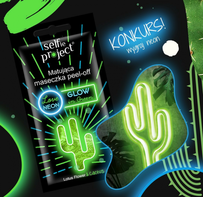 4 nagrody: matująca maseczka peel off Glow in Green marki Selfie Project oraz lampka neonowa Led w kształcie kaktusa