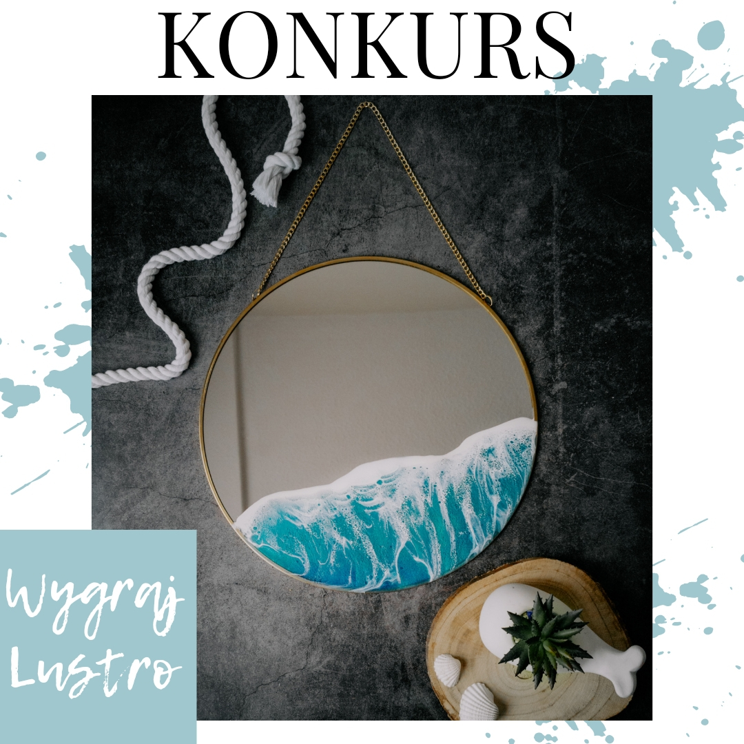 lustro o średnicy 30cm z falą morską stworzoną za pomocą żywicy epoksydowej