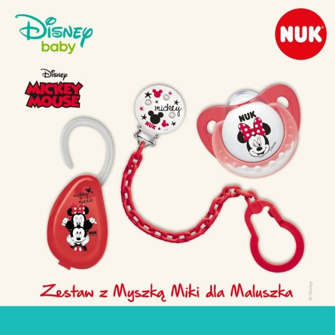 smoczek silikonowy NUK Trendline Myszka Miki rozmiar 1 , Łańcuszek Myszka Miki, Pudełko Myszka Miki