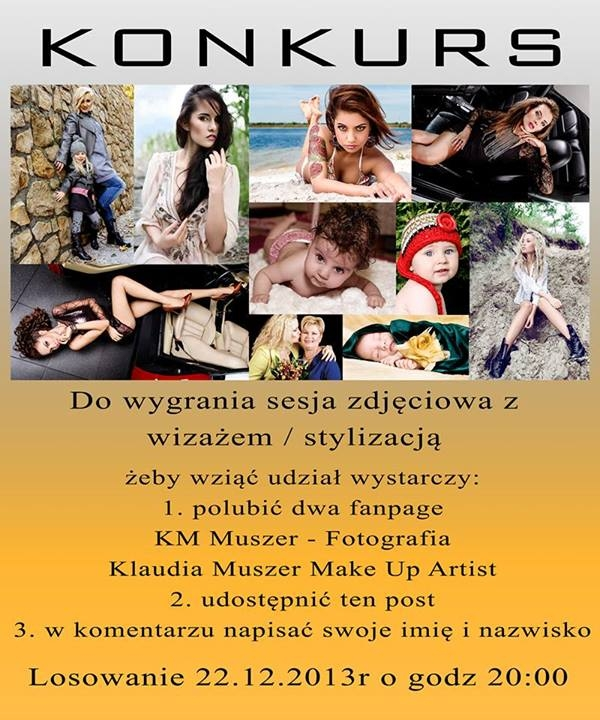 1. polubić dwa fanpage KM Muszer - Fotografia i Klaudia Muszer Make Up Artist