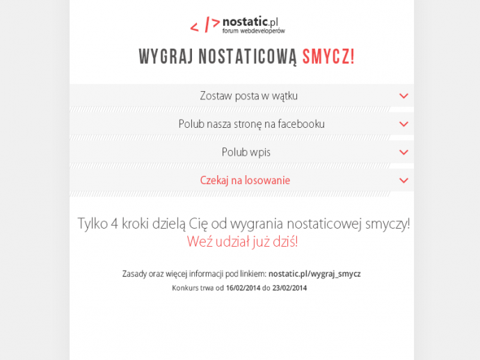 1. Zostaw posta w tym wątku, napisz coś miłego na temat konkursu.