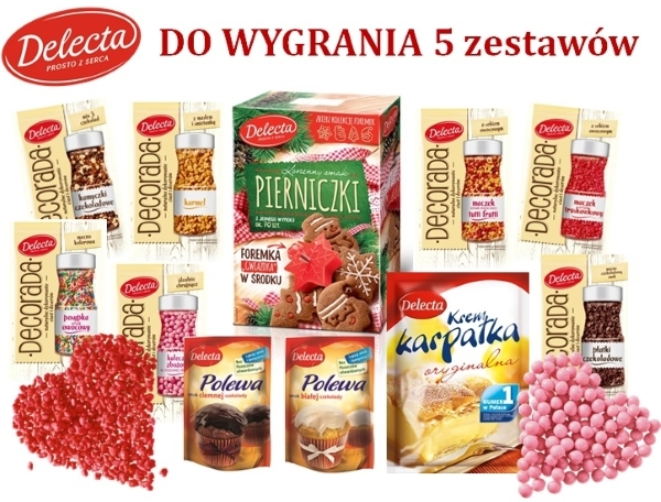 5x zestaw Delecta złożony z produktów do dekorowania ciast, tortów i deserów.