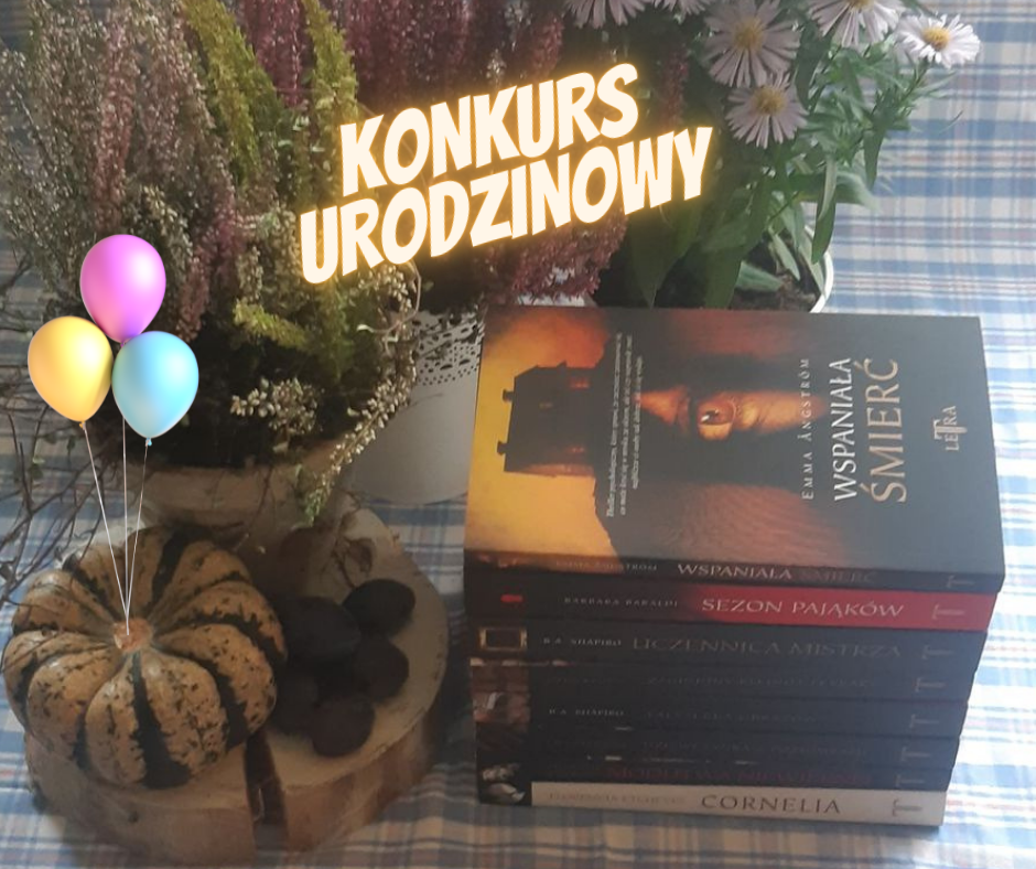 W komentarzu pod postem zastąp dowolny wyraz w tytule książki słowem “urodziny”. Tytuł książki musi być co najmniej dwuwyrazowy. “Urodziny” możecie odmieniać, ale inne wyrazy z tytułu już nie. Czyli w komentarzu może to wyglądać tak: “Fałszerka obrazów” = “Fałszerka urodzin”, choć niekoniecznie musicie podawać oryginalny tytuł, bo przecież uczestnicy konkursu (i my też) mogą pobawić się w zgadywanie. Ale to nie wszystko, jest drugie zadanie.